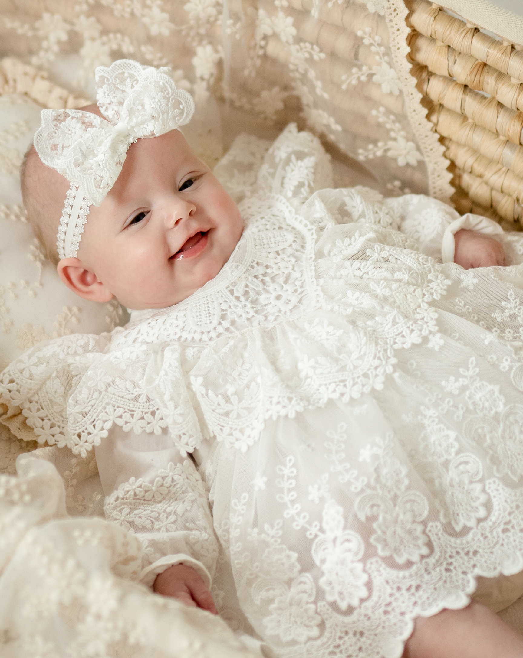 Elegancka koronkowa sukienka do chrztu Chanelka, r. podszewka