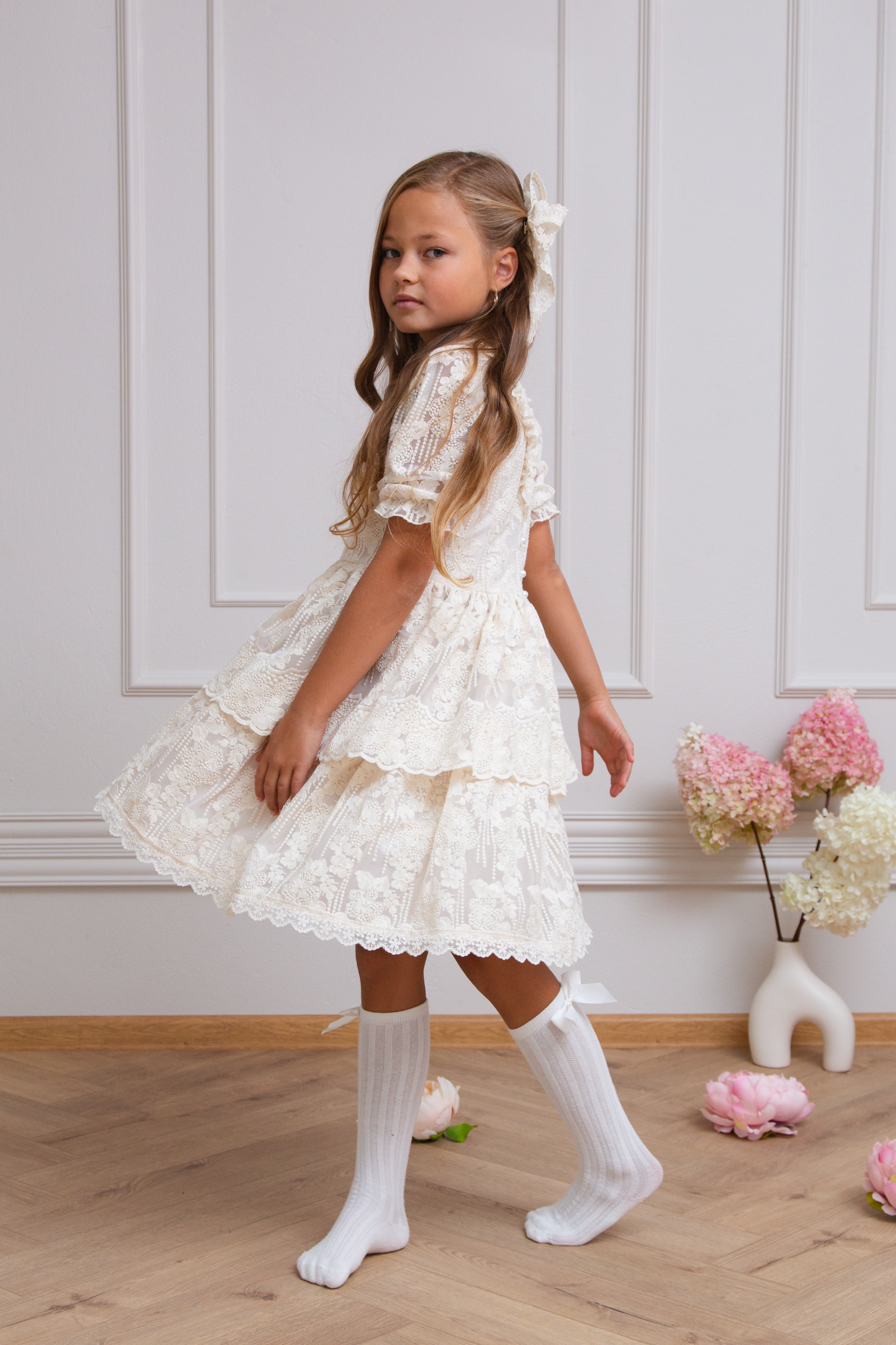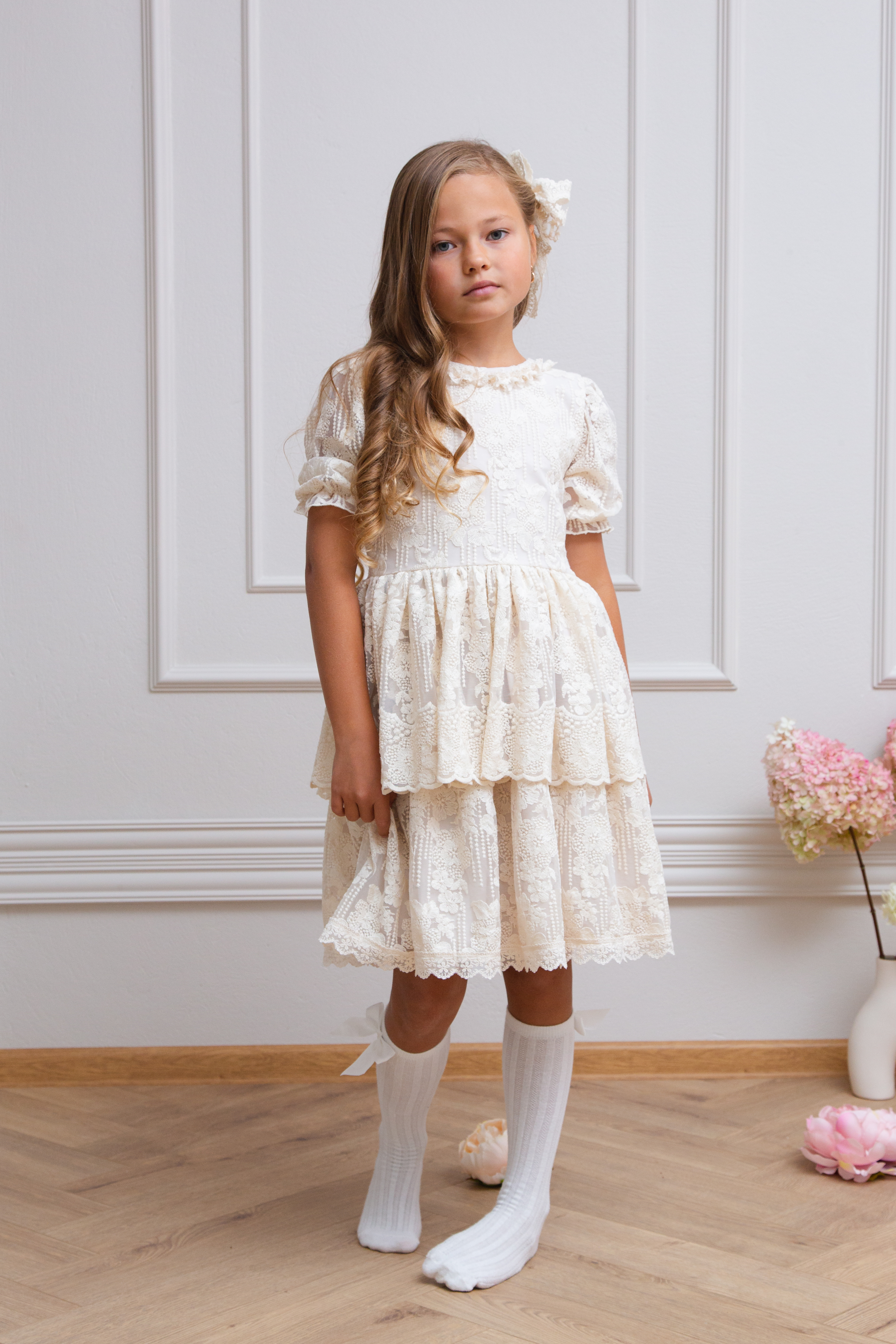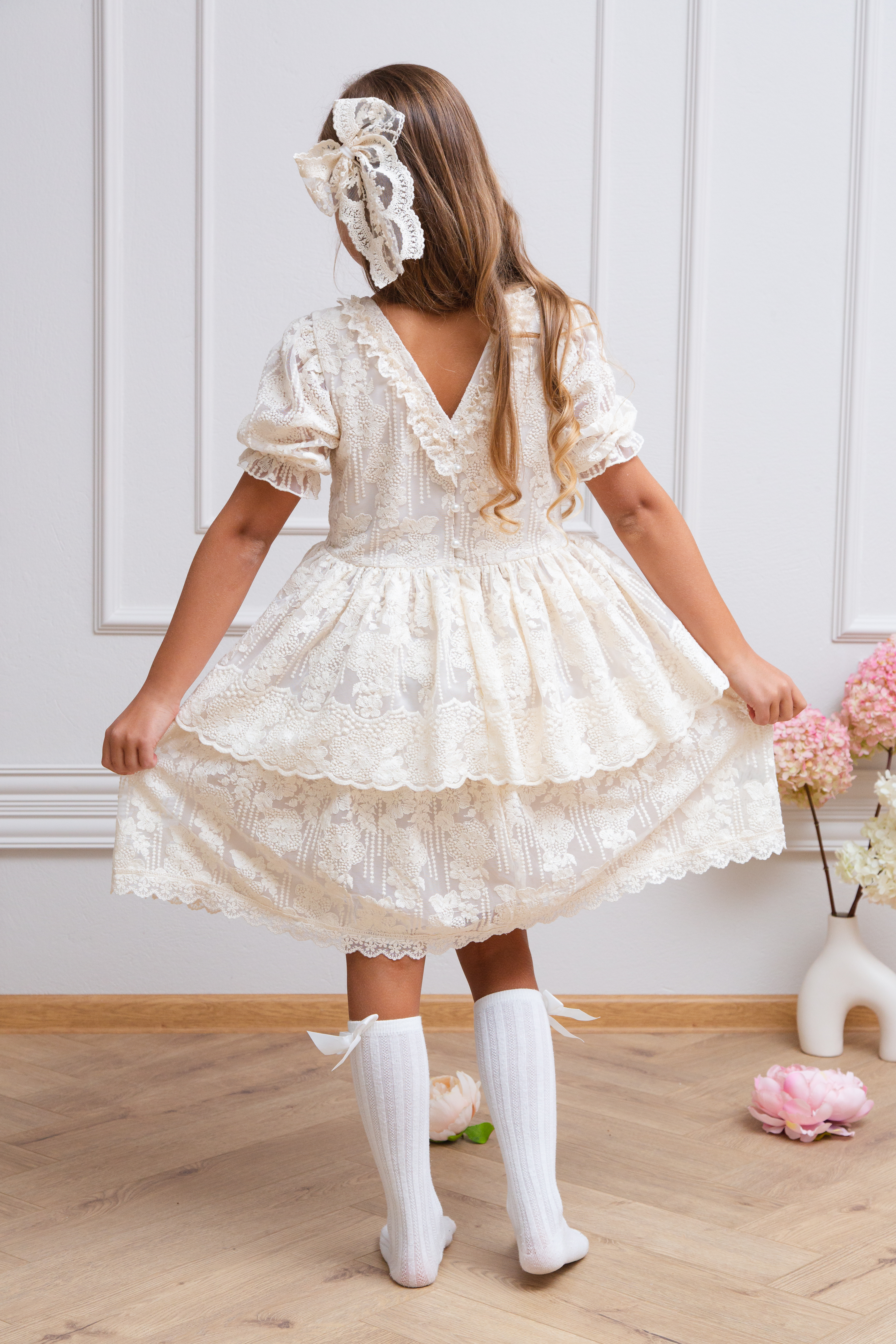Sukienka dla dziewczynki koronkowa, beżowa na wesele SERENITY